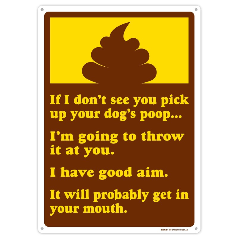 - BOLD AND HUMOROUS DESIGN: Features a playful message that reads, "If I Don't See You Pick Up Your Dog's Poop... I'm going to throw it at you. I have good aim. It will probably land in your mouth."