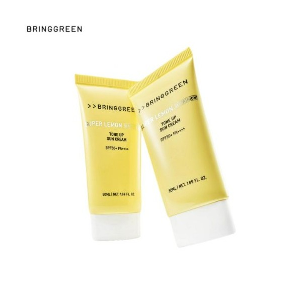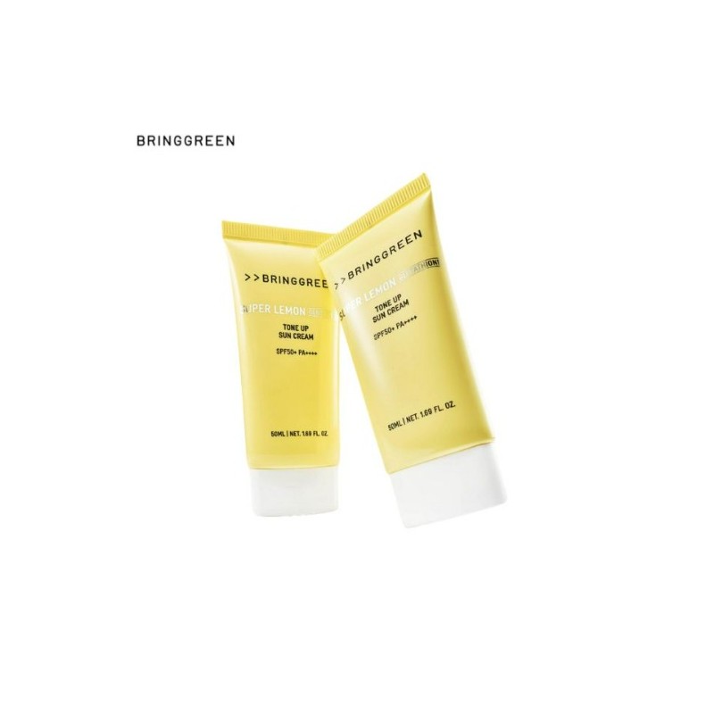 Brighten and protect your skin with BRING GREEN Super Lemon Glutathione Tone-Up Sunscreen, a multi-functional sunscreen that combines UV protection, skin brightening, and tone-up effects in one lightweight formula.