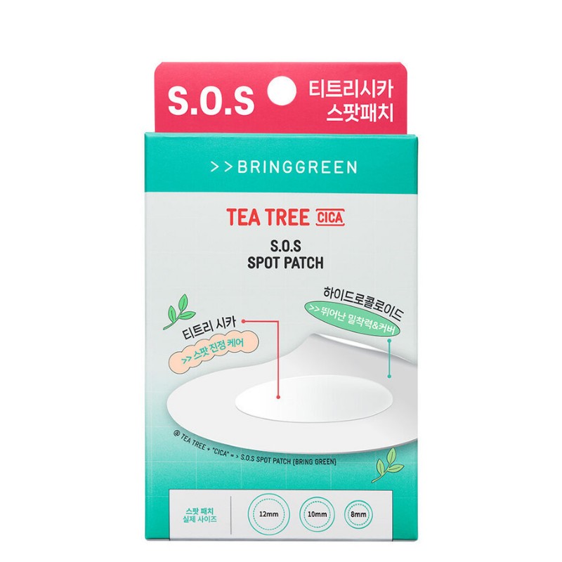 🌸 BRING GREEN Tea Tree Cica SOS Spot Patch soothes and covers troubled spots with Tea Tree Leaf Oil, Cica ingredients and Salicylic Acid.