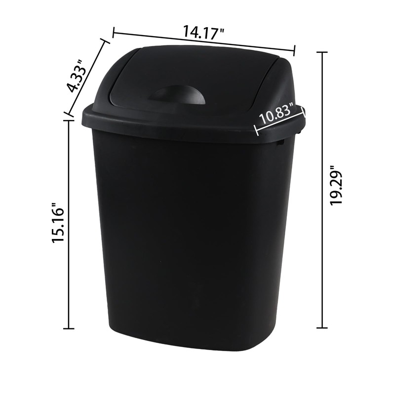 Bringer 6 Gallon Swing Top Trash Can, Plastic Garbage Can with Swing-Lid, Black, 4-Pack