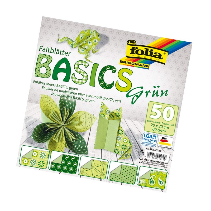 Bringmann Folia Basics folding sheets, 80 g/qm, 50 sheets assorted in 5 designs, Green, 20 x 20 cm