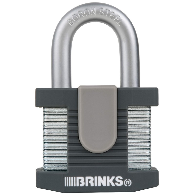 The Brinks Home Security 50MM zinc plated laminated two pack features padlocks with two stainless steel ball bearing locking mechanisms, with a matte chrome boron steel shackle stamped with "Boron Steel". These padlocks come with a 5 pin cylinder and a two-shot jacket with TPE overmold. Every Brinks product is designed to keep your home, loved ones, and your valuables safe by exceeding rigorous testing standards and using the highest quality materials to provide you with years of worry free use. Lifetime warranty included.