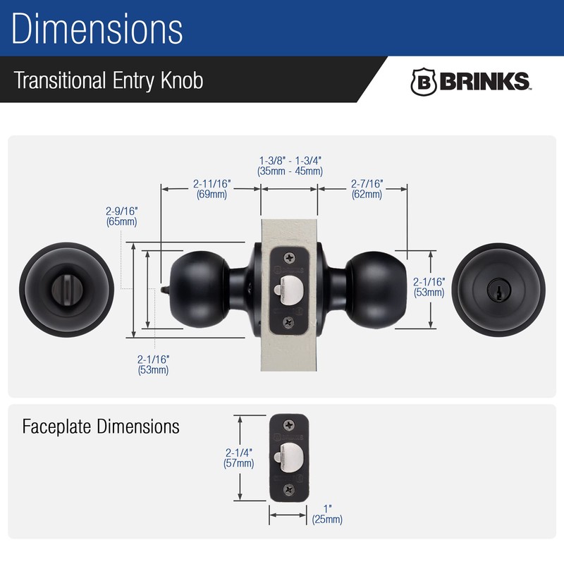 - FEATURES: Brinks Transitional Keyed Entry Ball Door Knob is a perfect combination of style and quality. Designed for traditional and transitional homes, this keyed door knob helps protect your home through locking and unlocking from the exterior.
