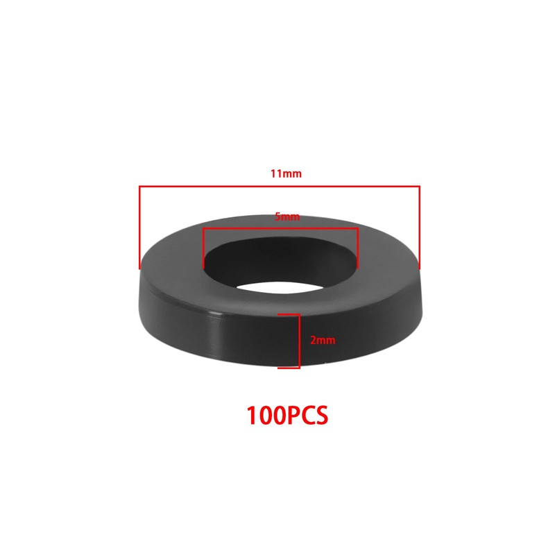 Briny River 100 Pcs Black Tension Rod Washers Replacement Part ID 5mm OD 11mm 2mm Thickness Nylon Washers for 5mm Diameter Drum Tension Rods
