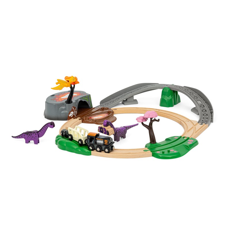 BRIO World Dinosaur Adventure Set - 21-Piece FSC-Certified - Wood Train Set & Accessories - Works with All BRIO Railway Sets - Dinosaur Train Engine, 2 Wagons, Dinosaurs, Tracks & More - Ages 3+