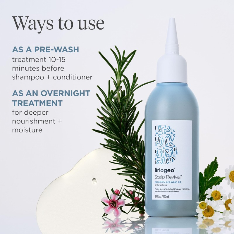 Briogeo's bestselling pre-wash treatment is fortified with vitamins and lipids that help soothe and balance a dry, itchy scalp, strengthen strands, and encourage longer hair.