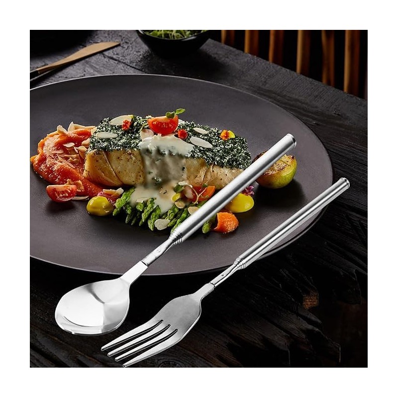 Adjustable Length for Convenience – This 2-piece extendable fork and spoon set is perfect for various dining needs, from BBQs and picnics to everyday meals. Easily extend or retract the utensils for added reach and flexibility.