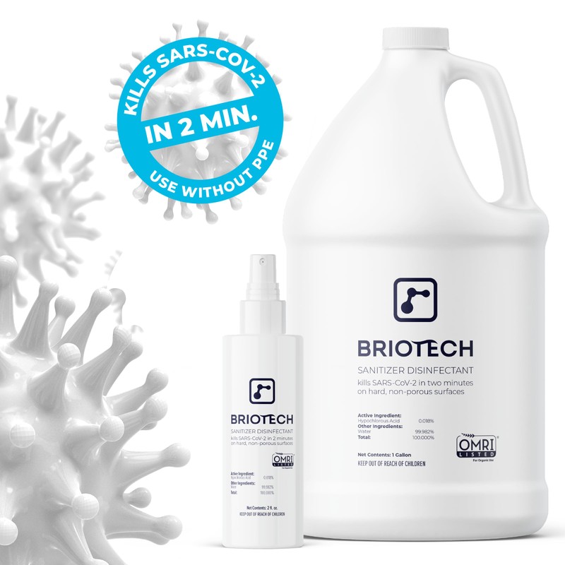 BRIOTECH Sanitizer Disinfectant Hypochlorous, Kill 99.99% of Viruses & Bacteria, Control Mold, Eliminate Odor, Gentle for Nursery & Play Rooms, Food Contact Surface Sanitizer, 1 Gallon Refill (4 Pack)