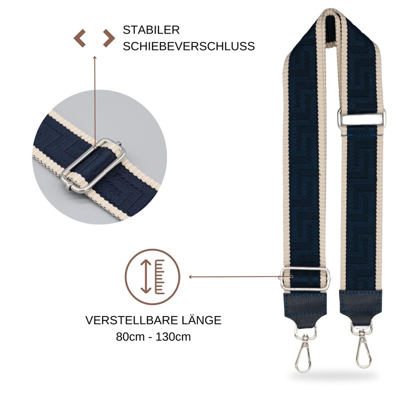 Brise Bag Strap for Men and Women, 5 cm Wide Shoulder Strap, Adjustable 80-130 cm Bag Strap Made of Polyester Fabric and Leather, Stylish Strap with 360° Rotating Head, DIY Accessories, Dark blue -
