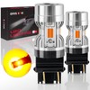 - ★Dual Brightness: Fit Size: 3056 3456 4156 3157 3157A 3057 3057A 3457 4057 4157 4157NA. Built with 2 modes, the brighter Amber mode for FRONT turn signal light and the normal amber mode for DRL/driving indicator