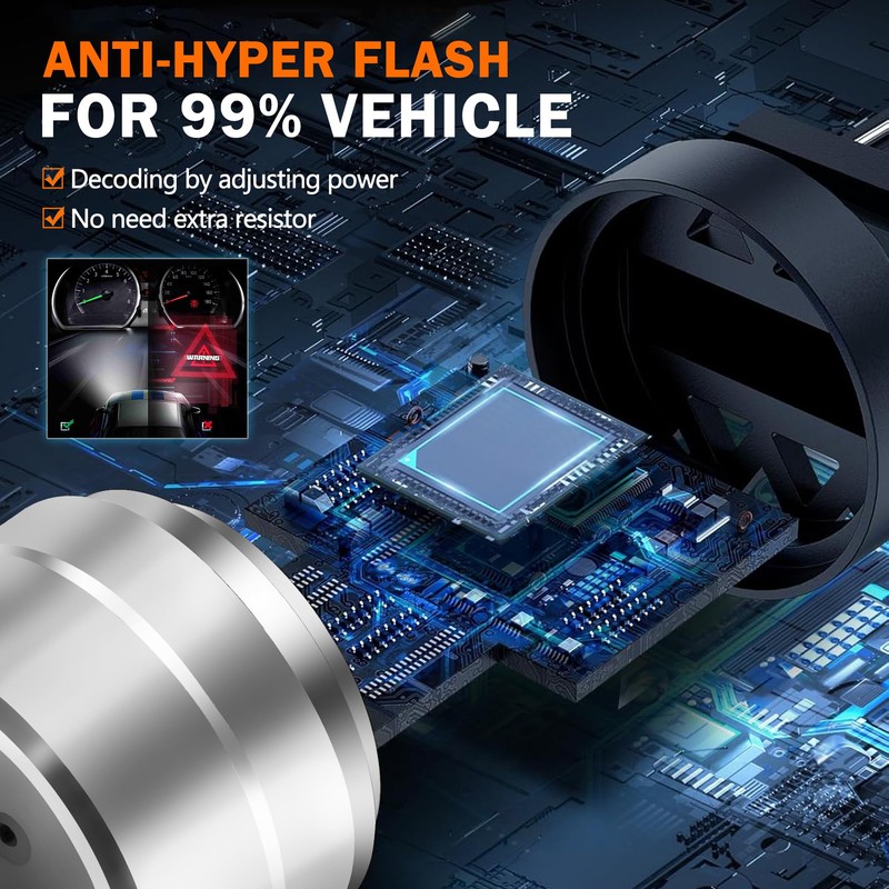 2. Since these bulbs built-in Intelligent Temperature Control, if you use for a long time (a few vehicles maybe 2-5 minutes, it depends on year/make/model and temperature) may happen hyper flash, please turn off and cool 1-2 minutes, they will work properly again