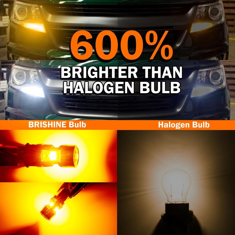 BRISHINE 3157 LED Bulbs CANBUS Error Free Built in Resistor Anti Hyper Flash 3056 4156 3057 4057 4157 Amber Yellow Turn Signal Lights, Pack of 2