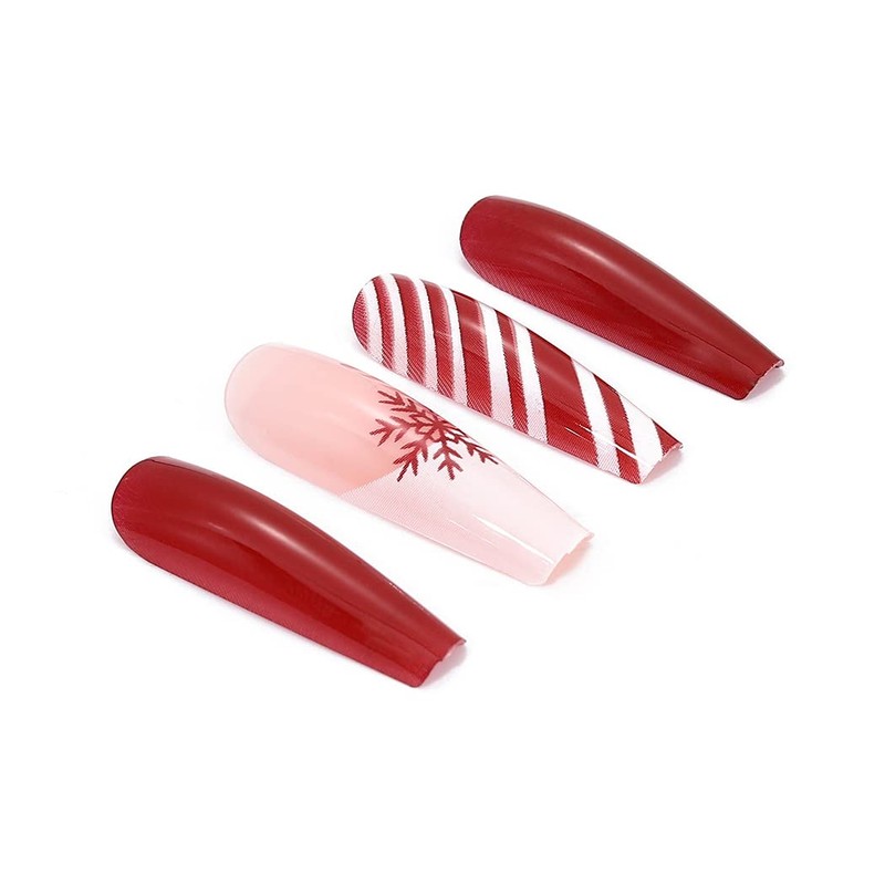 Brishow False Nails Long Fake Nails Snowflake Press on Nails Stick on Nails Red 24pcs for Women and Girls (9)