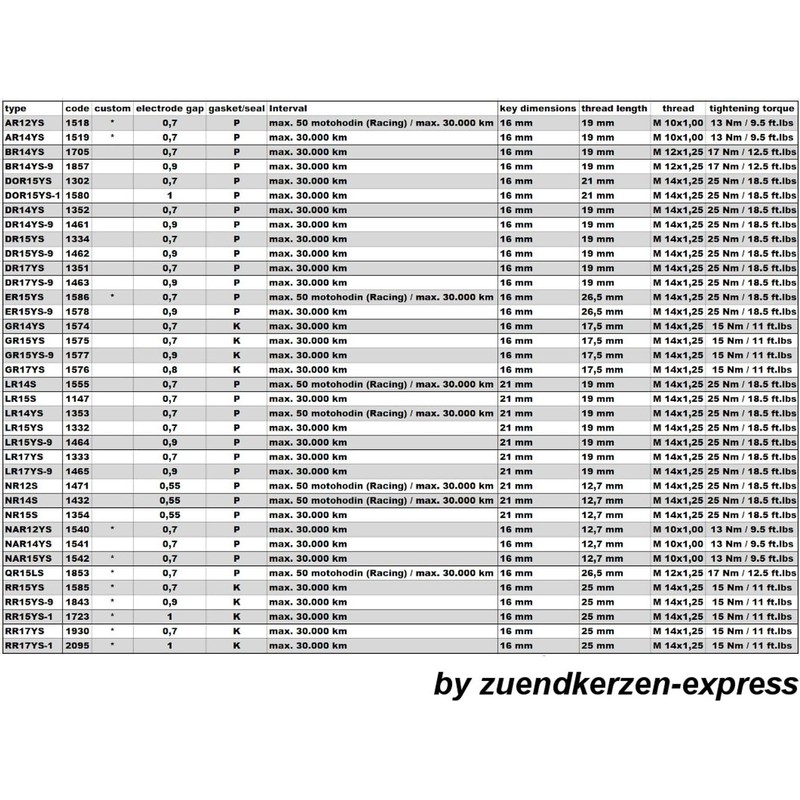 - Car: www.brisk.eu/catalogues/spark-plugs/type/DR17YS-9/auto