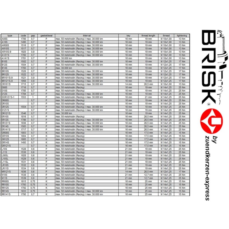 - For your motorcycle www.brisk.eu/catalogues/spark-plugs/moto