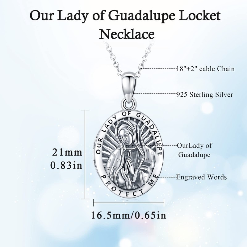 Brisskaari Our Lady of Guadalupe Locket 925 Sterling Silver Virgen De Guadalupe Locket Necklace Holds Picture Catholic Jewelry Keepsake for Men Women