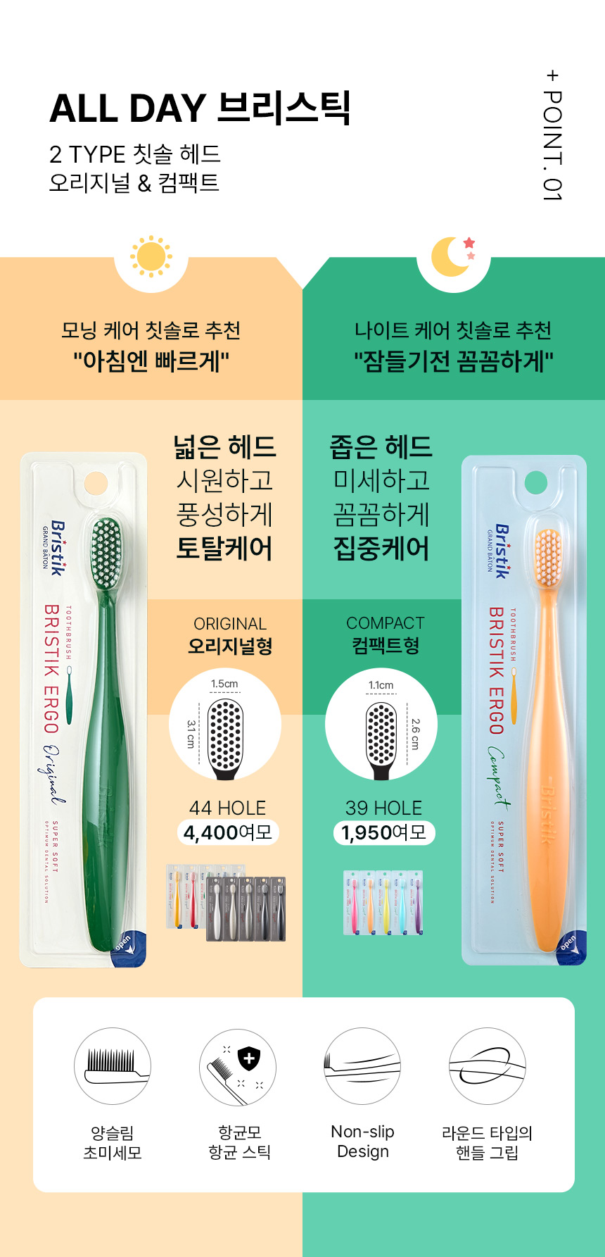 브리스틱 에르고 성인 칫솔 5개 컴팩트