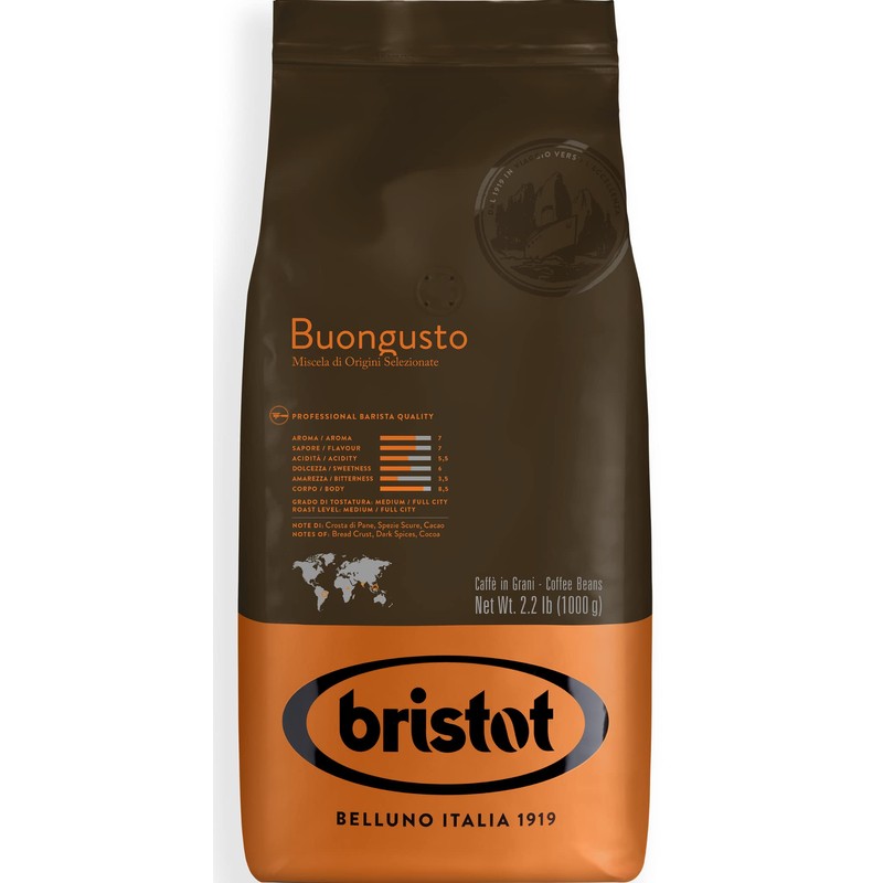Bristot Buongusto Italian Espresso Beans | Italian Coffee Beans Whole | Medium Roast | Low Acid | 2.2 lb/1kg
