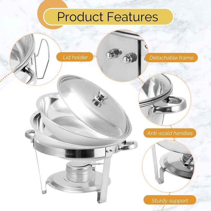 - 【Wide Application】 This 4QT chafer and buffet warmer set is a perfect choice for buffets,hotels,restaurants,parties,weddings,family gatherings,banquets and some other occasions. You can enjoy various food freely and conveniently by it