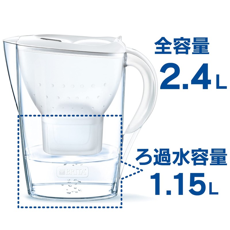 - [Compact Pot-type Water Filter Malera] Filtration water capacity x 3.5 gal (1.15 L), Total capacity 0.6 gal (2.4 L) It measures 10.2 x 10.2 x 4.1 inches (25.8 x 25.8 x 10.5 cm) and is compact enough to store in your refrigerator. In addition, the easy-to-fill flip top lid has an LCD note to help you know when to change cartridges