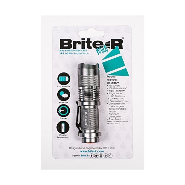Brite-R® Midi CREE XP-E R2 LED Mini Handheld Adjustable Zoom Pocket Torch Fla...