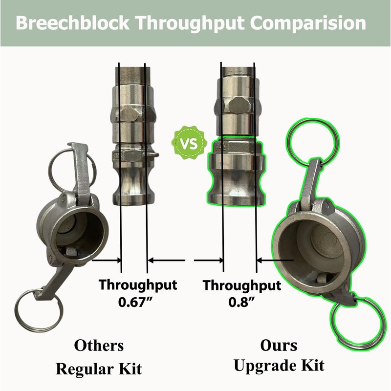 English variant model size: 1 x British style Stainless Steel Model Size: 13.6" x 7.5" x 7.9" inches , Weight: 4.1 pounds, breechblock diameter is 0.8" .