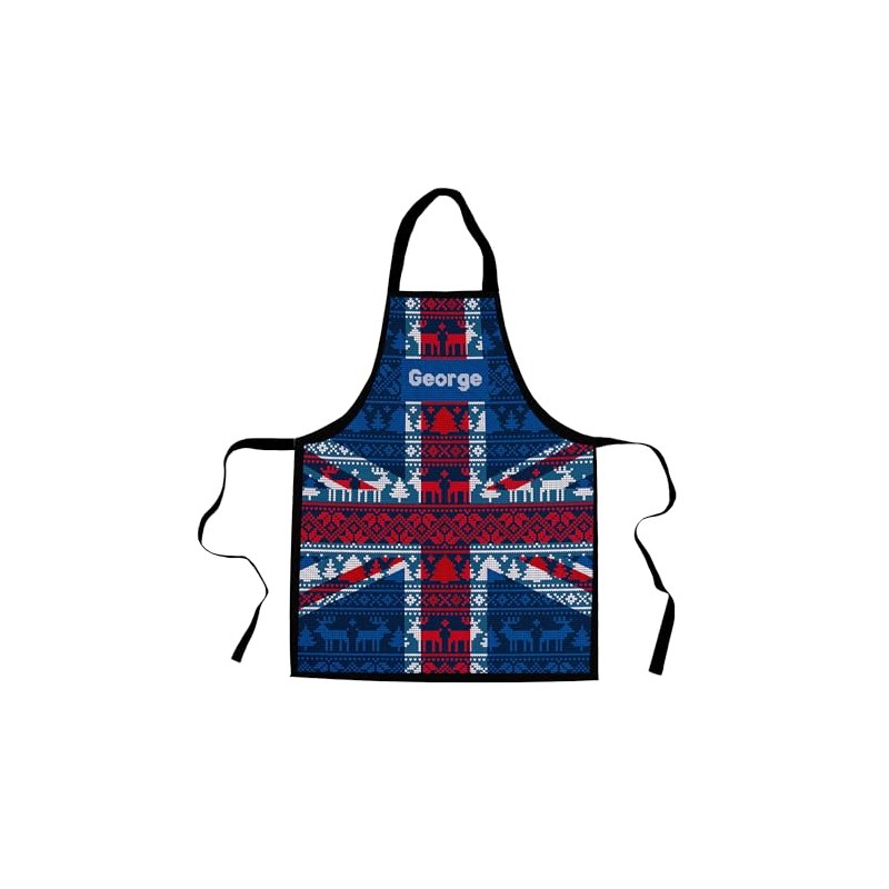 BRITISH MADE GIFTS Christmas Design Cooking Apron, Adult, Union Jack Xmas, Blue, Red & White