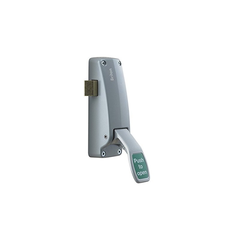 Briton 1438.L.SE Push Pad Exit Device-Rim Latch L/H, Site Reversible to R/H, Silver