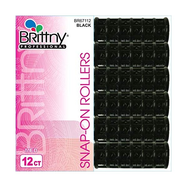 Brittny Snap-on Rollers - Black 12 Count, Medium (Pack of 1)