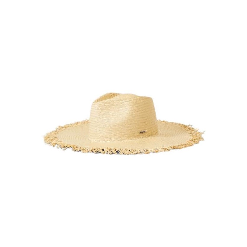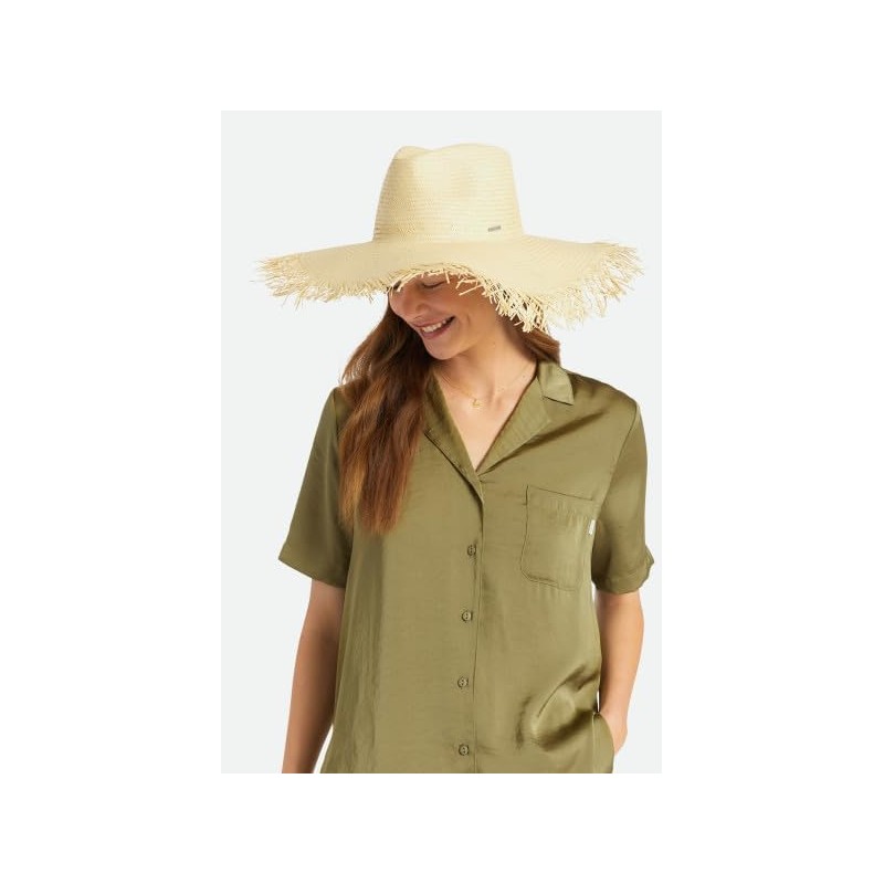 • 100% straw|Metal headwear plaque|Adjustable Velcro strap under sweatband|Unfinished brim with 1" straw fringe|50+ UPF rating