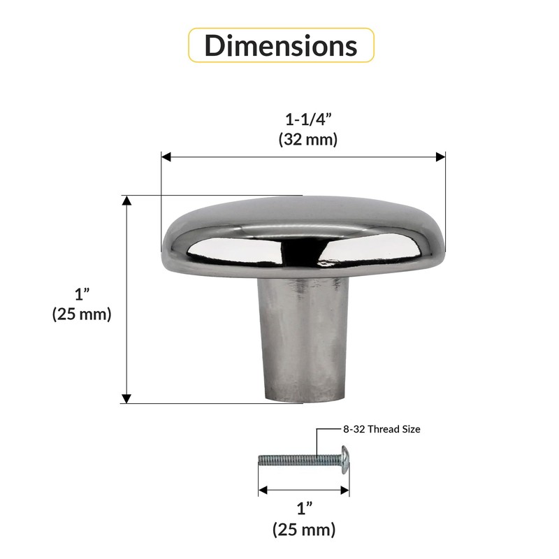 BRIXWELL BXB62017-XCP25 Mushroom Kitchen Cabinet Knob 1-1/4" Diameter Bright Chrome - Pack of 25