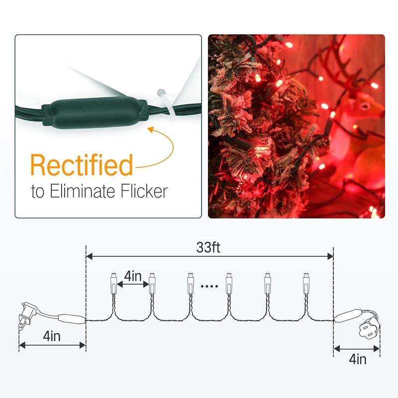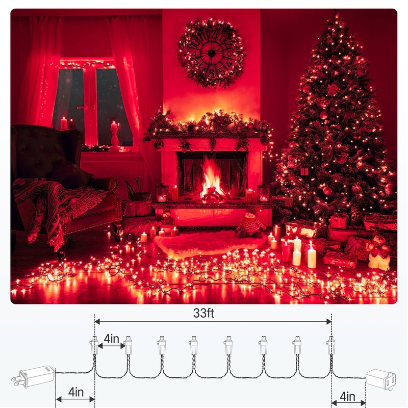 - Up to 22 Sets Connectable: These red led Xmas tree lights string are safely end-to-end connectable up to 22 sets for total 726ft decor length on one plug!