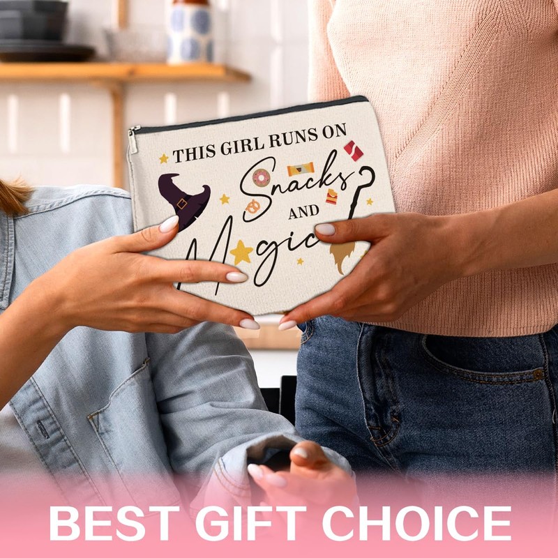 Brkpy Magic Wizard Makeup Bag This Girl Runs On Snacks Cosmetic Bag Gifts for Girls Sister Women Teen, Double Sided