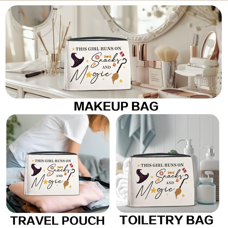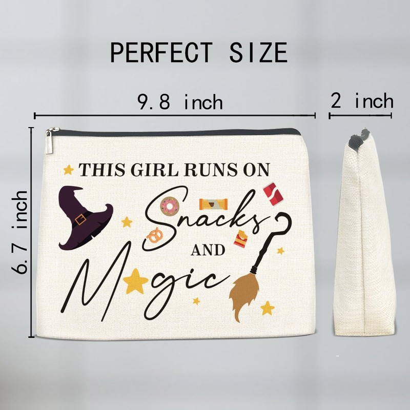 Brkpy Magic Wizard Makeup Bag This Girl Runs On Snacks Cosmetic Bag Gifts for Girls Sister Women Teen, Double Sided
