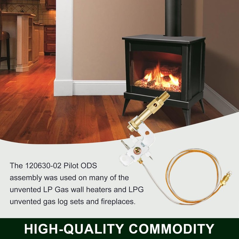 The 120630-02 ODS pilot assembly was used on many of non-vented and vented fireplaces, stoves, heaters, gas log kits. The same fit for Desa Glo-Warm propane 、Infrared、Natural Gas wall heaters and NG unvented fireplaces gas log sets. The pilot assembly is an essential accessory and part for heaters fireplaces.