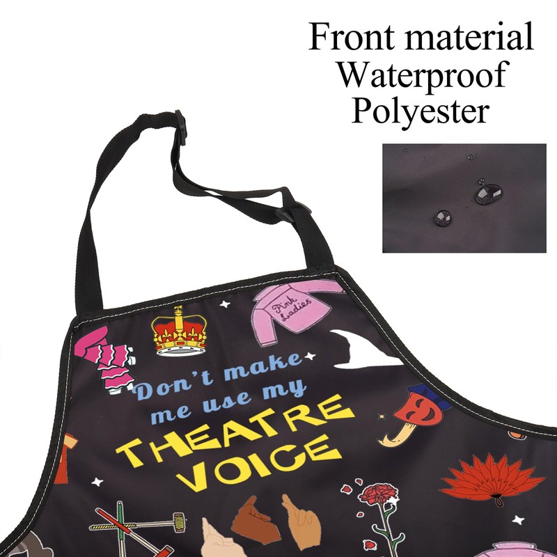 Material: This Broadway Aprons With Pockets made of thickened waterproof and oil resistant materials, soft and comfortable, printed with high-quality pictures and text.