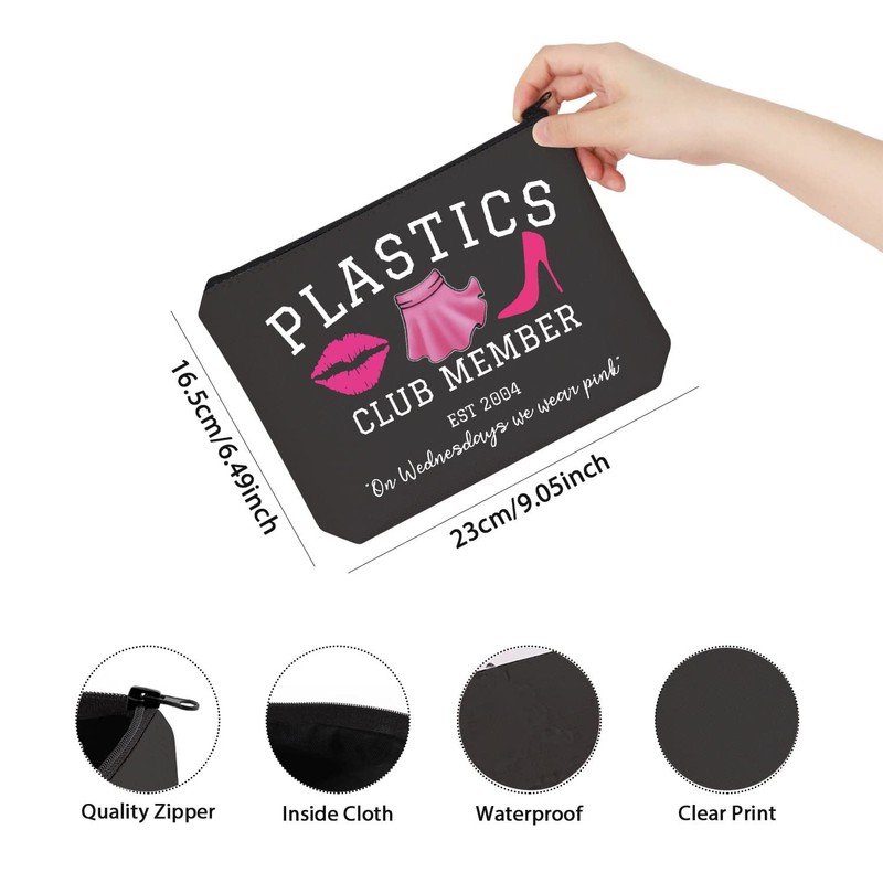 Broadway Mean Girls Plastic Club Member EST 2004 Best Friend Zipper Pouch Makeup Bag (BLK-Club Member CA)
