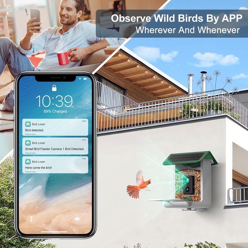 - 【Solar Panel Integrated Design】 The built-in 5200mAh low-power battery can run for about 4 months on standby under normal conditions. Power meter accurate power statistics, real-time synchronization of power, and equipment low battery alarm. Solar panels provide a constant source of power for the birdhouse, and help extend battery life, but cannot completely replace chargers.