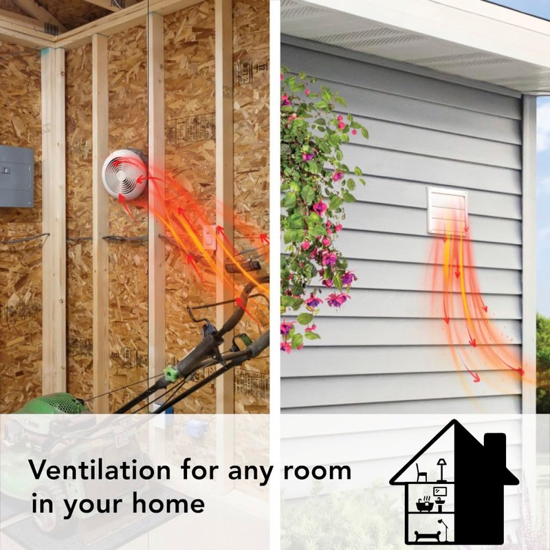 - VERSITILE: Ventilation fan eliminates heat, humidity and unwanted smells inside the garage, kitchen, laundry room or rec room