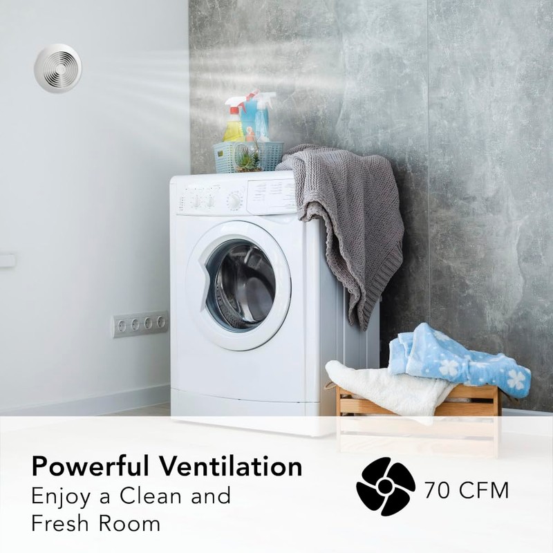 Product DescriptionSay goodbye to unbearable heat and humidity in the garage, unwanted smells in the kitchen and odors in the laundry room, rec room or garage. The Broan 70 CFM Through-Wall Ventilation Fan is the perfect solution for rooms up to 65 sq. ft, including a one car garage, or use for spot ventilation near areas such as a work bench, garbage can, car, or lawn mower. The durable galvanized steel housing provides superior protection against the elements and wear and tear. It features a built-in exterior wall cap/vent with bird screen, which reduces install time, no duct work needed. Customize your fan with one of Broan-NuTone's wall controls. For automatic operation, choose from a humidity or motion sensing control. To automatically turn off the fan after you leave the room or garage, pair the fan with a delay-off or countdown timer. (Wall controls sold separately)From the ManufacturerSince 1932, Broan-NuTone LLC has led the industry with forward-thinking residential ventilation products, unsurpassed built-in convenience products and superior customer service. While global expertise plays a critical role in Broan-NuTone's ability to being able to meet and exceed the needs and desires of homeowners and designers alike, Broan-NuTone is very proud of the fact that over 80 percent of their products sold in the United States are designed, engineered and manufactured in the United States with U.S. and imported parts. Manufacturing operations in the United States are located in Hartford, Wisconsin and Cleburne, Texas, with customer and technical services located in Hartford and in Cincinnati, Ohio. Broan-NuTone is committed to developing revolutionary products that improve the indoor environment as well as implementing procedures to preserve the outdoor environment. Broan is the industry leader of range hoods, ventilation fans, heater/fan/light combination units, Indoor Air Quality (IAQ) Fresh Air Systems, built-in heaters, whole-house fans, solar powered attic ventilators and trash compactors. NuTone holds major market positions in door chimes, central vacuum systems, stereo intercom systems, home theater speakers, medicine cabinets, ironing centers, ceiling fans and ventilation fans. BEST range hoods are the "Ultimate in Kitchen Ventilation featuring state-of-the-art performance and Italian design.