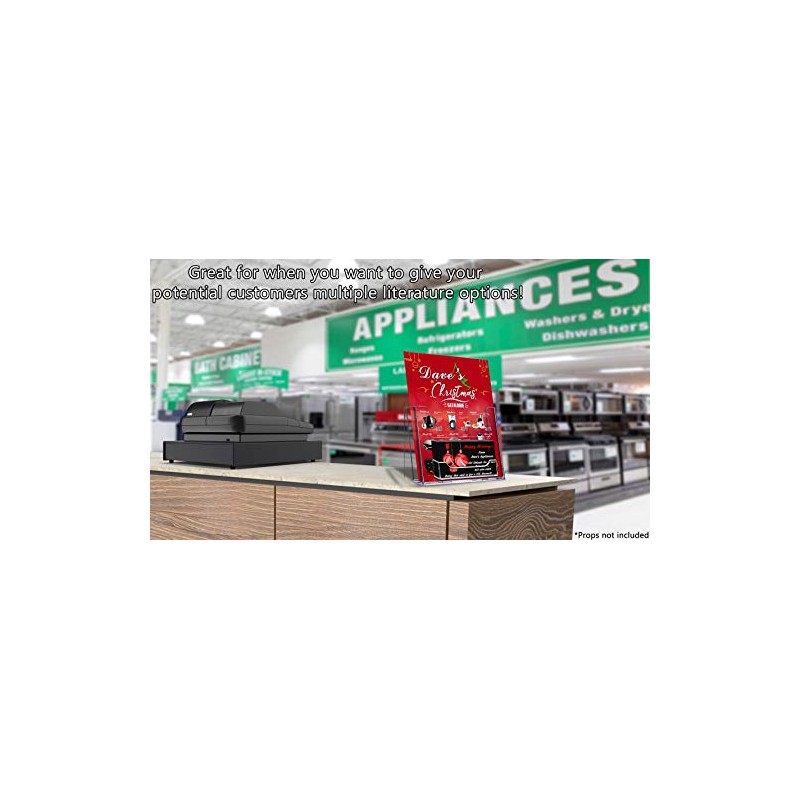 - Multi pocket countertop display stand for bifold brochures, flyers, booklets and business cards Proudly made with premium high quality acrylic