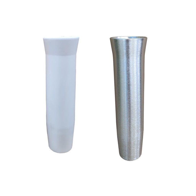 Brocraft Aluminum Rod Holder Flared Weld On / Weld On Aluminum Flared Rod Holder. Ideal for welding to towers, T-tops, radar arches, railings and leaning posts ,10" Anodized Aluminum Weld on Rod Holder , Comes with removable white Vinyl Insert that are tapered to fit snugly with flared fishing rods. Brushed finish and Silver anodized