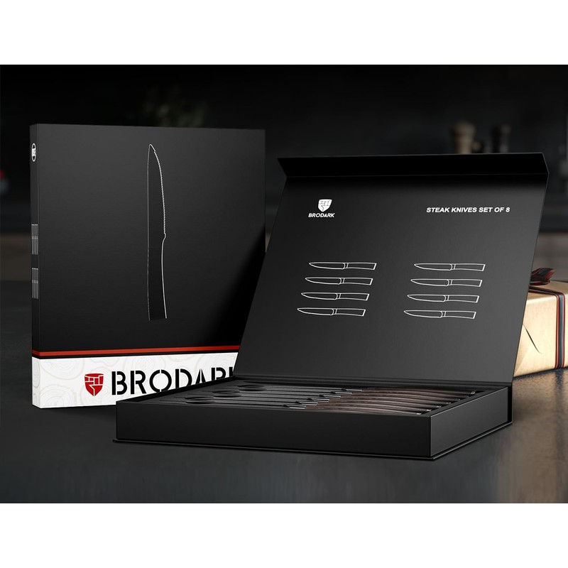 - Low Maintenance: BRODARK steak knives are made from high-carbon stainless steel, can stay sharp for longer and resist rust. Take half a minute to hand wash it and dry it, that's all you need to do to keep them in good condition