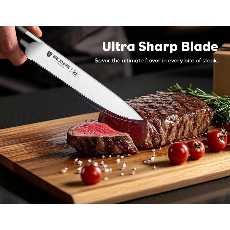 - Low Maintenance: BRODARK steak knives are made from high-carbon stainless steel, can stay sharp for longer and resist rust. Take half a minute to hand wash it and dry it, that's all you need to do to keep them in good condition