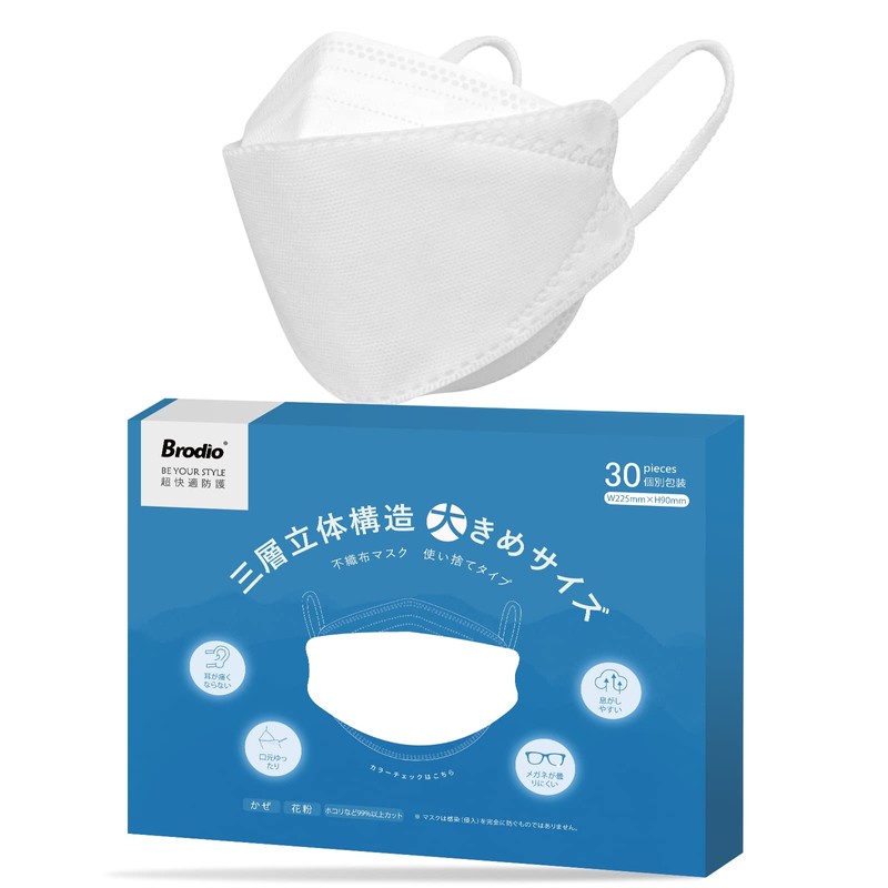 [Brodio] マスク 立体 超大きめ 不織布 三層構造 個包装マスク バイカラー メンズ ダイヤモンド形状 柔らかい素材 肌にやさしい 使い捨て 3d...