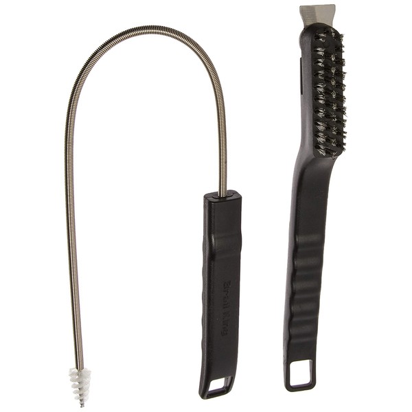 • Fine detail brush also has a needle tip to clean out any clogged burner tube holes - essential on rotisserie burner grills