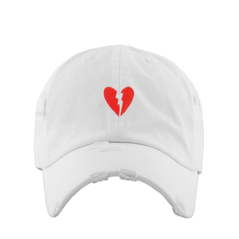 Broken Heart Vintage Baseball Cap Embroidered Cotton Adjustable Distressed Dad Hat White