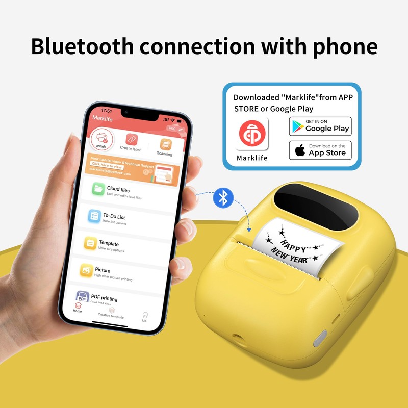 • 【Easy TO Use】P50 Bluetooth label printer supports iOS & Android and PC. Mini Bluetooth wireless thermal label printer, connect to your smart phone in 2 seconds via Bluetooth 4.0. The free App is downloaded from APP STORE or Google Play. USB connection and online software for Windows PC. (Need to download the drive and APP for Windows). Select from the app and connect to model P50 printer to enjoy printing.