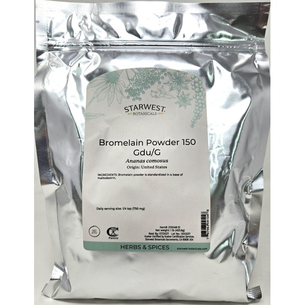 Bromelain Powder 150gdu - Ananas comosus, 1 lb,(Starwest Botanicals)