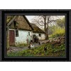 - Bromolle Farm With Chickens 24x18 Black Ornate Wood Framed Canvas Art by Peder Mork Monsted